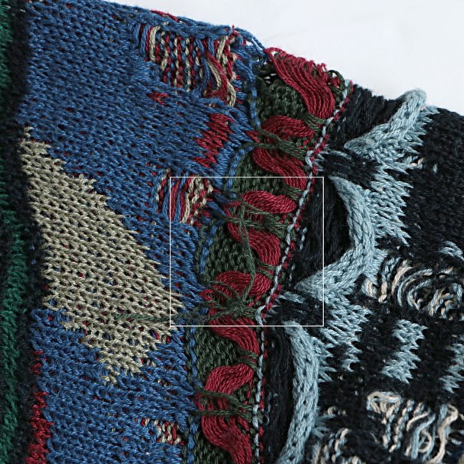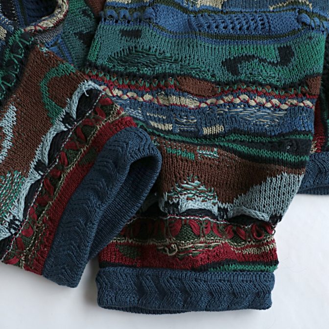 手の込んだ様々な色柄模様が惹きつける力があるニットかと思われます。