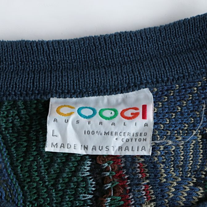 COOGI クージー 総柄 3D コットン ニット セーター Australia製 古着 used マルチカラー