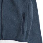 表面はセーターのようなニット地で吸湿発散性を備え、裏面は保温性の高い起毛したフリース地になったデザイン。