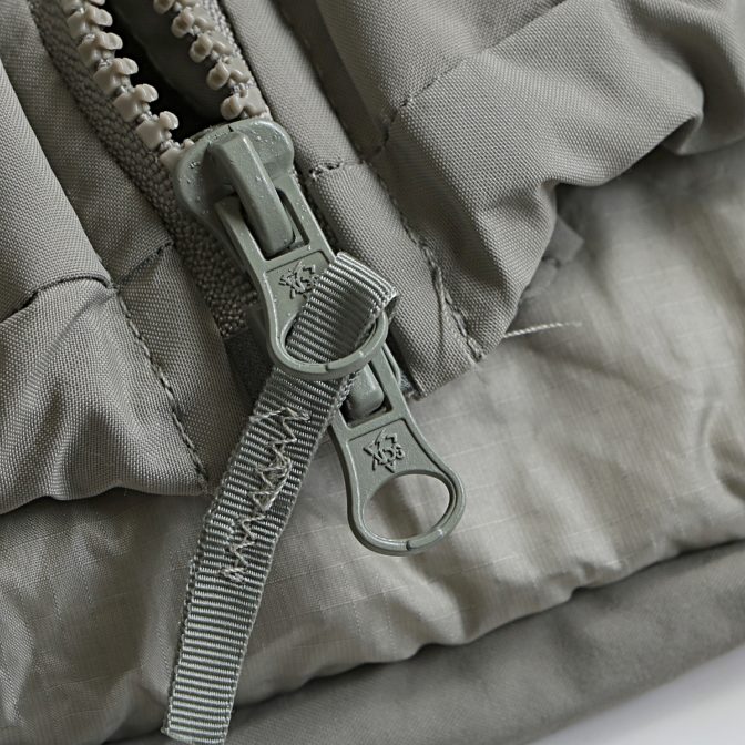 シェルは通称アーバングレー。撥水性のあるナイロン地。