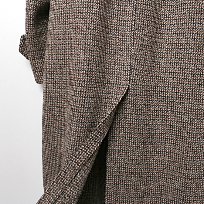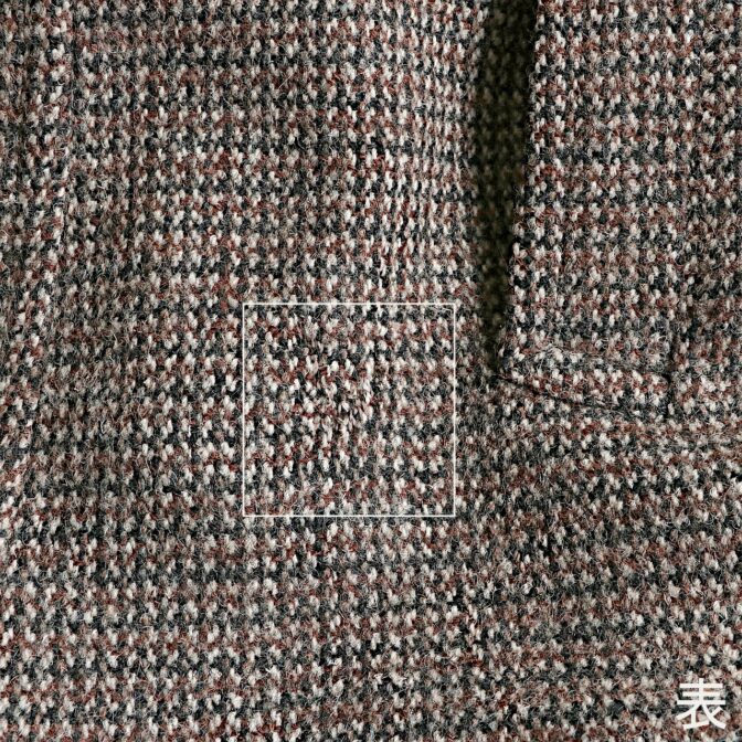 オールドツイードコートでは数少ないブラウンカラーで暗めな色になりがちな冬の装いでも色味を加えられ、アースカラーやベージュ系のアイテムとも組み合わせ易い一枚かと思います。